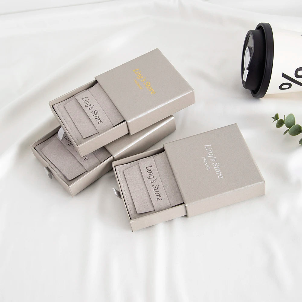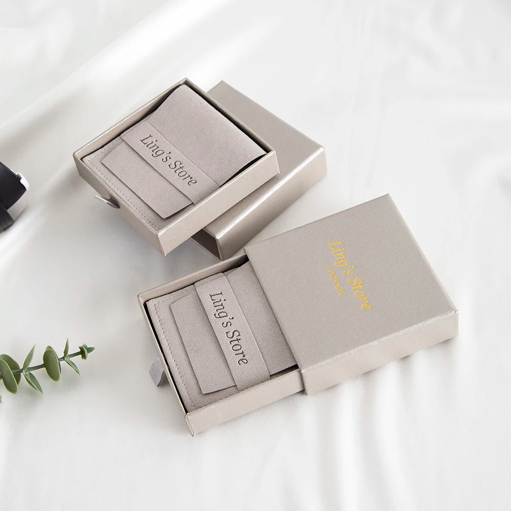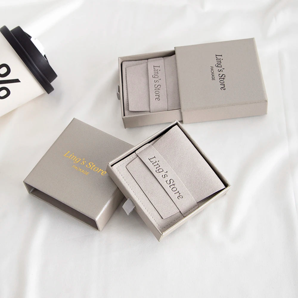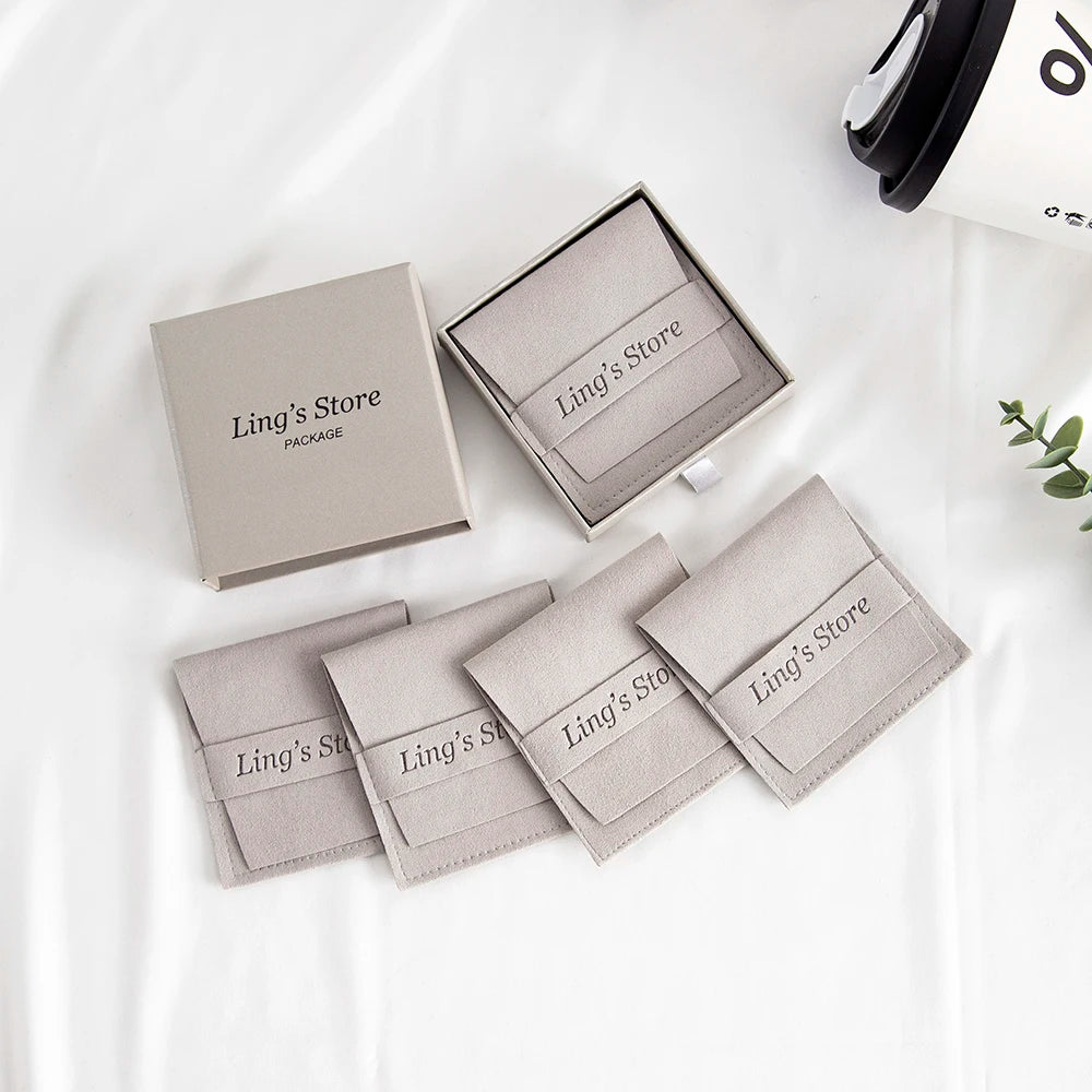 24Sets Personalized Custom Logo Jewelry Gift Box with High Quailty Microfiber Velvet Envelope Bag Rings Earrings Organizer Pouch