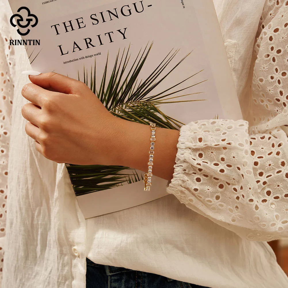 Rinntin 14K Gold Plated Hip Hop AAAAA Cubic Zirconia Tennis Bracelet 925 Sterling Silver 2025 Sparkling Crystal Jewelry SB208