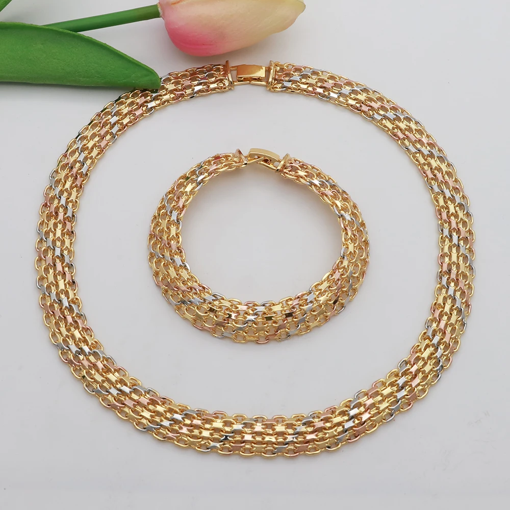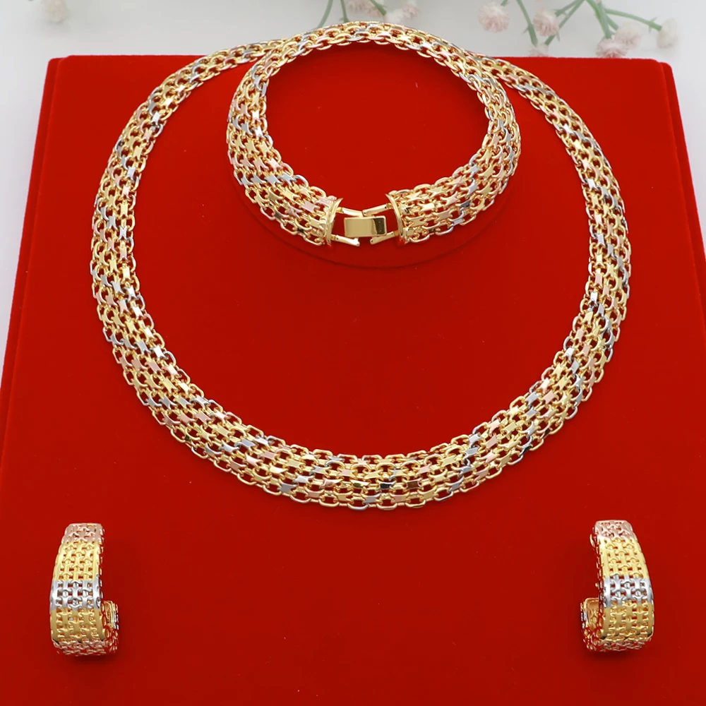 Simple Elegant Gold Color Women Jewelry Sets Necklace Earrings Bracelet Set Fashion Set Dubai Wedding Banquet Party Gifts